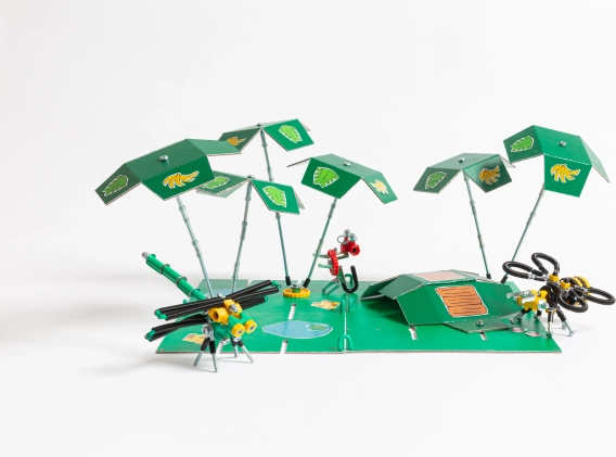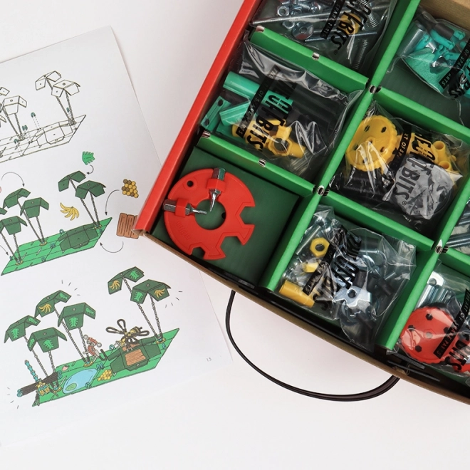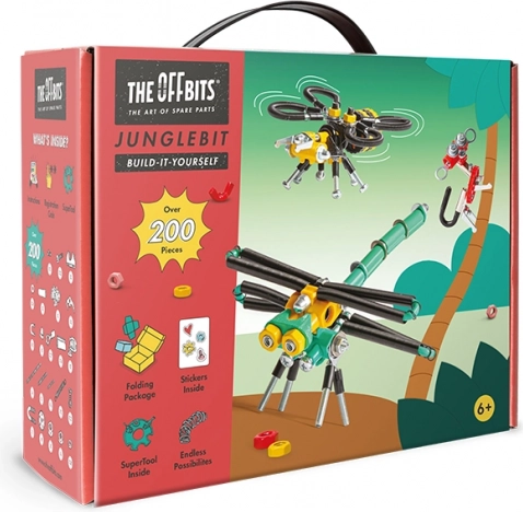 JungleBit Építőkészlet kalandot hoz az otthonodba a dzsungel világából. Több, mint 200 színes alkatrésszel, beleértve a különleges csavarokat és anyákat, egyedi modelleket vagy új találmányokat hozhatsz létre a fantáziád szerint.