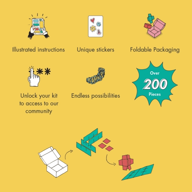 Merülj el a kreativitás világában a JungleBit építőkészlettel az OffBits-től. Ez a készlet négy alapmodellt tesz lehetővé: BeeBit, MonkeyBit és DragonflyBit, de a lehetőségek itt nem érnek véget! Ezzel a készlettel különféle egyedi alkotásokat építhetsz és kísérletezhetsz háztartási anyagokkal. Az építőkészlet segíti a tudomány, technológia, mérnökség, művészet és matematika készségeinek fejlesztését, miközben javítja a finommotorikus készségeket és a logikus gondolkodást a gyermekeknél.