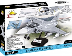 Építsd meg a lenyűgöző SAAB JAS 39 GRIPEN C többfeladatú vadászgépet 465 különleges építőkockából! Ez a katonai repülőgép a cseh légierő színeiben támogatja a repüléstechnikai és katonai rajongókat. A kiváló minőségű nyomatokkal ellátott blokkok és a nyitható pilótafülkébe beilleszthető pilótafigura teszi különlegessé a szettet.