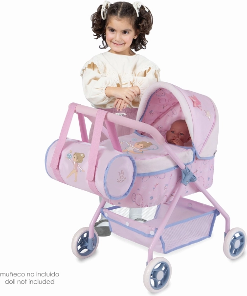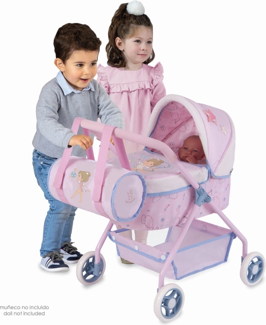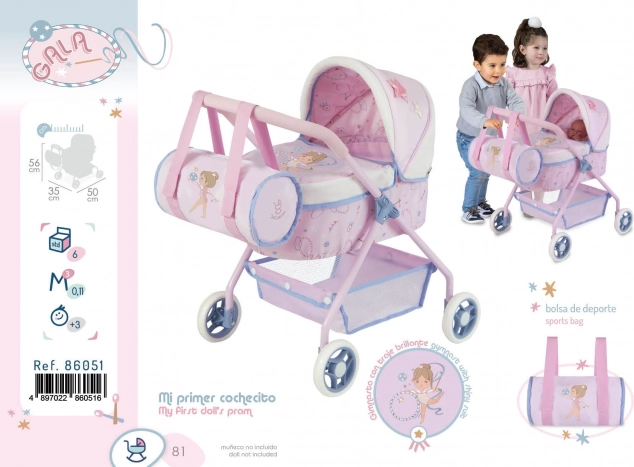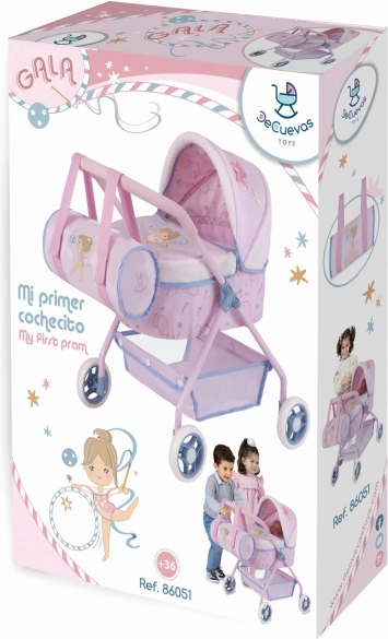 A bájos GALA babakocsi elegáns spanyol dizájnt, minőségi kivitelezést és praktikus megoldásokat kínál a mindennapi játékhoz. Az alacsony tolókar és a könnyű váz miatt a gyerekeknek otthon és kint is nagyon könnyű tolni.