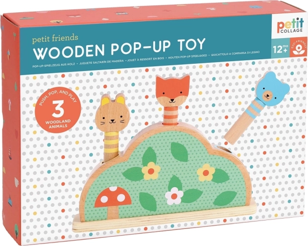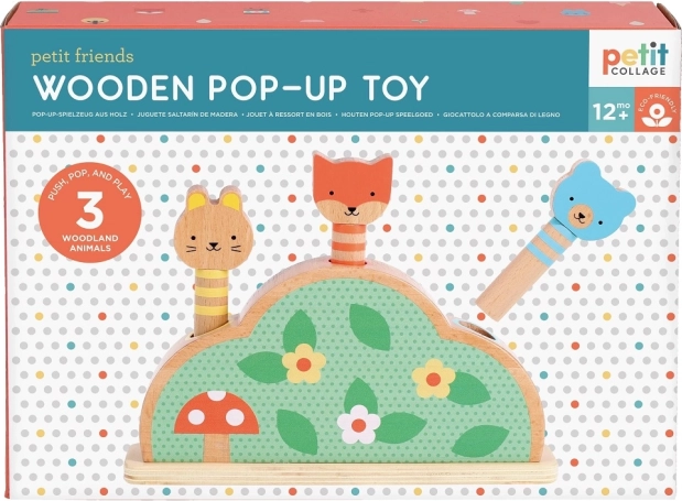 Fedezd fel a legkisebbeknek szánt játékos és biztonságos szórakozást a PETIT COLLAGE fa rugós játékával. Három erdei állatka rugón várja, hogy a gyerekek lenyomják és felpattanjanak – remek tevékenység a finommotorika, a kéz–szem koordináció és az ok–okozati összefüggések megértésének fejlesztésére. FSC® tanúsítvánnyal rendelkező fából készül, vízbázisú, nem mérgező tintákkal nyomtatva, és környezetbarát csomagolásban.