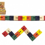 Klasszikus fa kirakós játék kígyó formában, ideális a gyerekek finom motorikus képességeinek fejlesztésére. Lehetőség különböző formák összeállítására az elemek forgatásával.