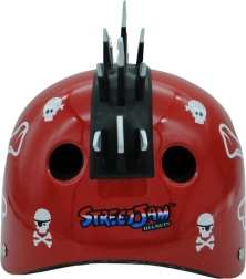 Piráti vörös sisak kerékpárosoknak, gördeszkásoknak és görkorcsolyásoknak kiváló védelmet nyújt. Kilenc szellőzőnyílással és ütésálló megerősített polimer burokkal rendelkezik.