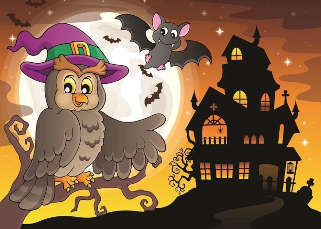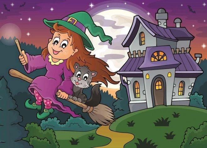 Fedezd fel a fantázia világát a bagoly és boszorkány témájú, két darab puzzle-ből álló szettel. Mindegyik puzzle 100 darabból áll, és kirakva megközelítőleg 34 × 24 cm – ideális méret gyerekasztalra vagy keretezéshez.
