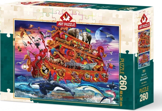 Fedezze fel a kirakózás varázsát az ART PUZZLE márka Noé bárkája minőségi puzzle-jével, 260 darabbal. Ideális gyerekeknek és felnőtteknek, akik szórakozást és kikapcsolódást keresnek gyönyörű motívummal és precíz kivágással. Az összeállított kép mérete kb. 48 × 34 cm.