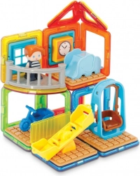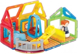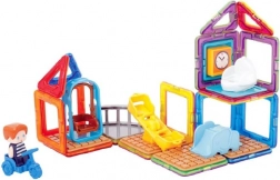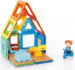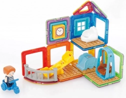 Élvezd a szórakozást Maxszal és az ő játszóterével! A kreatív mágneses építőkészlet lehetővé teszi nagyszámú háromdimenziós objektum megépítését kétdimenziós műanyag sokszögekből. A Magformers fejleszti a finommotorikát, ösztönzi a kreativitást, megtanítja a gyerekeknek a színeket és az alapvető geometriai formákat. Az elemek mérete és gondosan megválasztott alakja a lehető legnagyobb biztonságot garantálja a játéknál. Az építőkészlet anyaga megfelel a legszigorúbb higiéniai és egészségügyi előírásoknak. Az elemek elég nagyok, nem nyelhetők le, és gyakorlatilag törhetetlenek. A csomag tartalma: