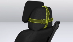 Könnyen rögzíthető a fejtámlához állítható pántok és csatok segítségével. A 360 fokos forgási lehetőség tetszőleges pozíció beállítását teszi lehetővé.