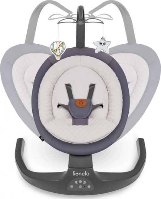 A LIONELO Ralf nyugágy a baba és a szülők kényelmére lett tervezve. Az alacsony tömeg megkönnyíti a hordozást, a kétfokozatú háttámla-beállítás megfelelő testhelyzetet biztosít pihenéshez és játékhoz, a levehető huzat pedig 30 °C-on könnyen mosható mosógépben. A ringatás segít a babának biztonságban érezni magát, megnyugtat, és pozitívan hozzájárul a motoros készségek fejlődéséhez.