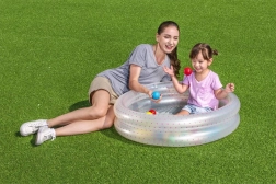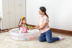 Univerzális medence/labdamedence 91 × 20 cm méretben, amely alkalmas nappaliba szőnyegre és a kertbe is. Két azonos felfújható gyűrű stabil és puha oldalfalakat hoz létre, növelve a kényelmet és a biztonságot játék közben. Előre tesztelt, tartós vinil és biztonsági szelepek segítenek bent tartani a levegőt és meghosszabbítják a termék élettartamát.