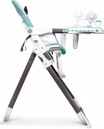 - Kétrészes, állítható és levehető tálca megemelt peremmel és játékokkal