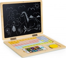 A Fa laptop ECO TOYS ideális eszköz a kis művészek és kíváncsi gondolkodók számára. Ez a multifunkcionális eszköz fekete táblát kínál krétás írásra és rajzolásra, valamint mágneses táblát szavak és számok összeállítására. Ez remek mód az alapvető olvasás és matematika tanulás során a kreativitás és készségek fejlesztésére.