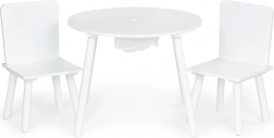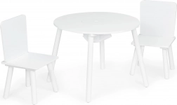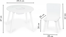 Teremtsen a gyerekeknek saját sarkot alkotáshoz, építéshez és uzsonnához. Az asztal kerek lapja tartós MDF-ből készült, sima, könnyen tisztítható felülettel, amely bírja a mindennapos használatot. A stabilitást a masszív fenyőfa lábak garantálják, így a szett biztonságos és strapabíró.