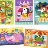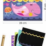 Kreatív készlet kis felfedezőknek, amely 5 nagy, állatos kaparókártyát és egy kétoldalas fa tollat tartalmaz a nagy felületek és a részletek könnyű lekaparásához. Ideális 18 hónapos kortól, fejleszti a finommotorikát, a türelmet és az alkotás örömét.