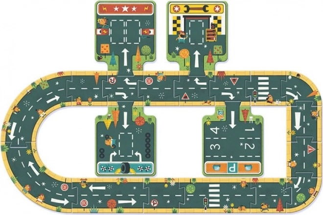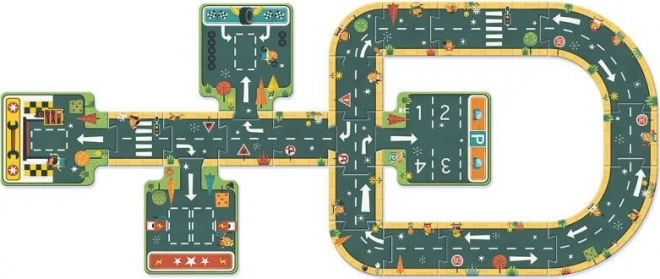 A közúti puzzle a kis sofőrök igényeire készült: a masszív elemek könnyen összeilleszthetők, jól tartják a formát, és inspirálnak az önálló, illetve a közös játékra is. Tökéletes kiegészítő autópályákhoz, garázsokhoz és figurákhoz.