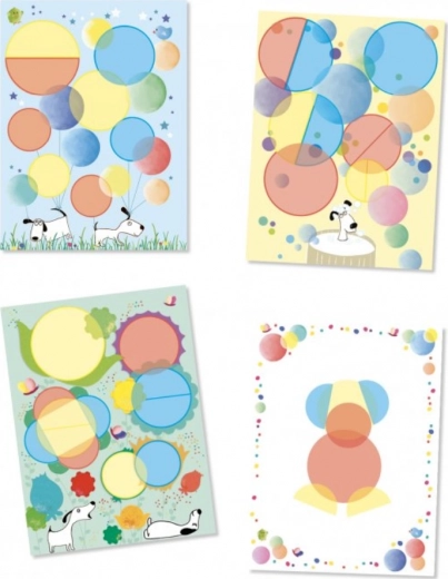 Gyönyörű színes készlet a legkisebbek számára, akik különböző színű köröket használva szép képeket hozhatnak létre tele kreativitással és fantáziával.