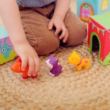 A gyermekek tornyokat építhetnek, kockákat helyezhetnek be vagy csoportosíthatják őket kedvük szerint.