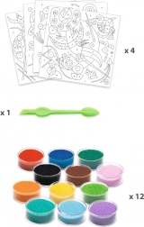 Készíts egyedülálló és gazdagon színes műalkotásokat tizenkét különböző színes homok és egy speciális eszköz használatával.