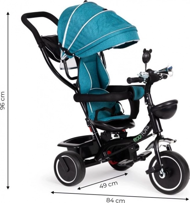 Élvezze a mozgás örömét az ECOTOYS triciklivel, amely kényelmes megoldást kínál a 12 hónapos kortól induló gyermekek számára. A 360°-ban forgatható ülés lehetővé teszi az üléspozíció igény szerinti beállítását, ami lehetőséget ad a gyerekek szülőkkel való közvetlen kapcsolatához vagy a külvilág felfedezéséhez. A tricikli biztonságra, kényelemre és gyakorlatias használatra lett tervezve.