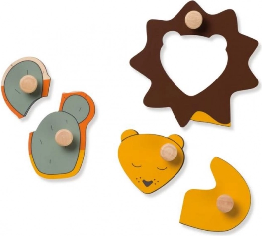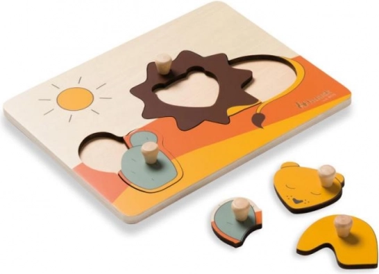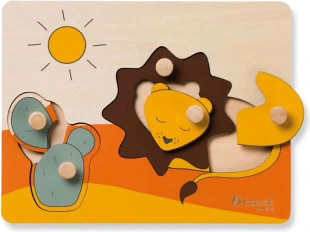 A Hauck Lion fa kirakó biztonságos és örömteli első kirakózáshoz készült. A színes, állatkákat és napocskát ábrázoló darabok praktikus fogantyúval rendelkeznek, amelyek megkönnyítik a kezelést, erősítik a fogást, és megtanítják a gyerekeket a formák helyes behelyezésére.