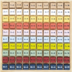 Fedezze fel az okos és szórakoztató taneszközt – fa táblát színes kockákkal a 20-ig terjedő összeadás gyakorlásához. Minden kocka egyik oldalán feladat, a másikon megoldás található, így a gyerekek önállóan ellenőrizhetik a válaszaikat. A masszív, 100% FSC fa hosszú élettartamot biztosít, a kompakt méret pedig ideális utazáshoz és iskolába is.