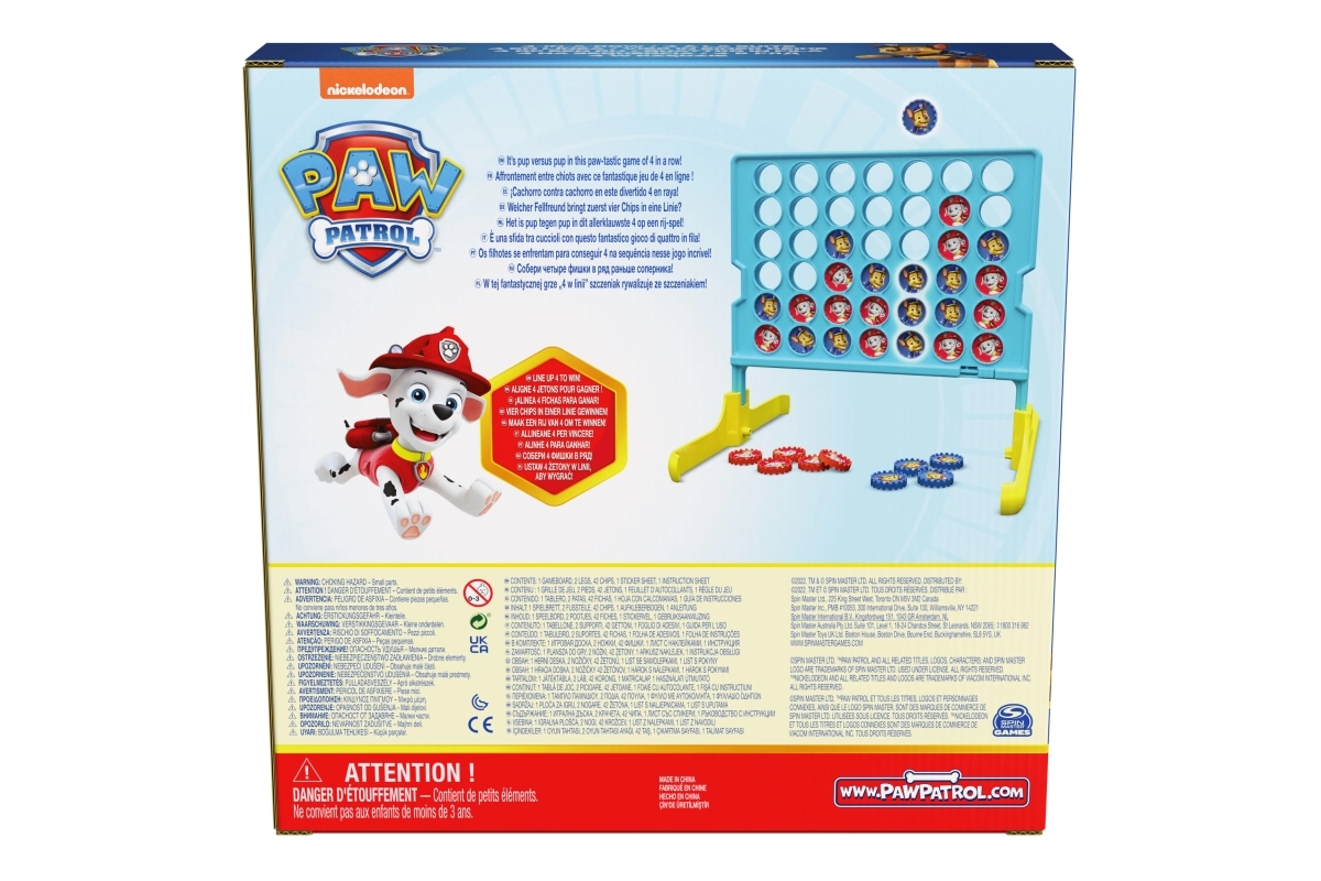 Szórakoztató gyerekváltozata a klasszikusnak! A Mancs őrjárat – Négy egy sorban családi játékban a Spin Mastertől két játékos felváltva dob be zsetonokat a kedvenc hősökkel a Mancs őrjáratból, és megpróbál elsőként négyet egy sorba rendezni – vízszintesen, függőlegesen vagy átlósan. Egyszerű szabályok, gyors menetek és remek szórakozás 4 éves kortól az egész családi estére.