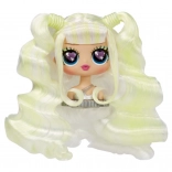 A babának hosszú szőke haja van, amely formázható és fésülhető különböző frizurák és kreativitás számára.