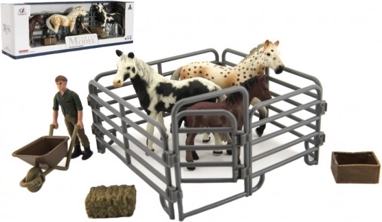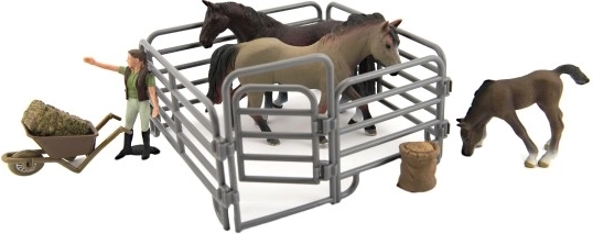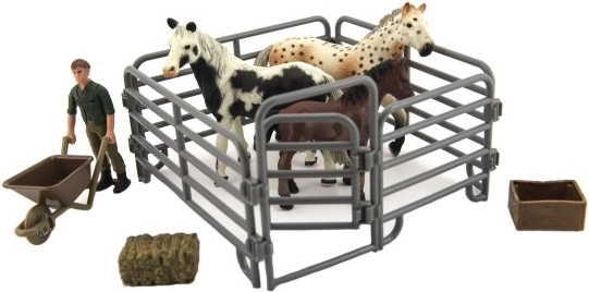 A készlet nemcsak figurákat tartalmaz, hanem tartozékokat is, mint a talicska, szalma bála és kerítés, hogy még több szórakozást nyújtson.
