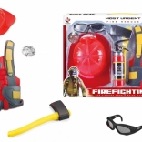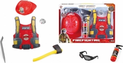 Legyél hős a tűzoltó készlettel gyerekeknek, amely tartalmazza mindazt, ami színes tűzoltós játékhoz szükséges: mellény, sisak, kisbalta, szemüveg, tűzoltókészülék, feszítővas és kitűző.