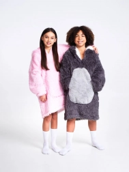 Ez a pihe-puha kapucnis pulóver-takaró ideális kanapén heverészéshez, játékhoz, olvasáshoz és esti kerti beszélgetésekhez. A bő szabásnak köszönhetően nem korlátozza a mozgást, és a gyerekek kellemesen melegen maradnak benne. A meleg sherpa polár bélés és a kívül szuper puha flanel kellemes tapintást és kiváló szigetelést biztosít.