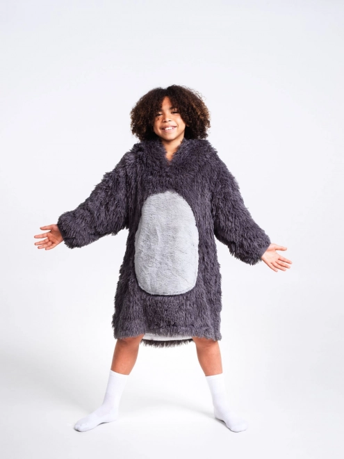 Aranyos és praktikus meleg kapucnis pulóver-takaró 7–12 éves gyerekeknek, lajhár motívummal a COZY NOXXIEZ-től. Egyesíti a pulóver kényelmét és a takaró melegét – szuper puha flanel és pihe-puha sherpa polár a maximális melegtartásért. Nem hiányzik a nagy kapucni, az óriási elülső zseb és a bő szabás az otthoni és kültéri kényelemhez.