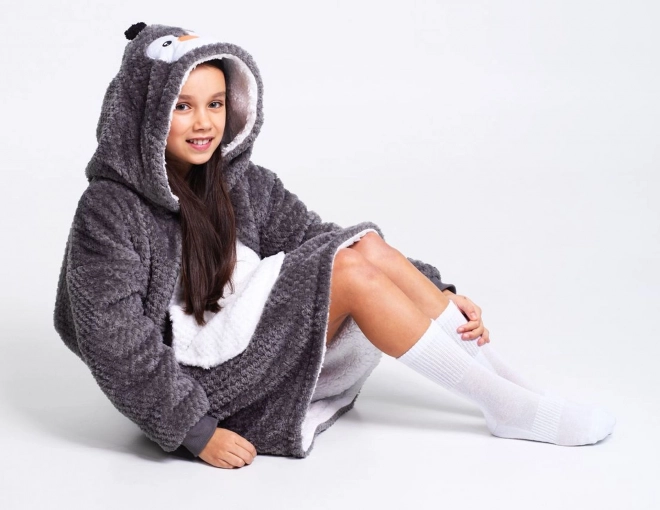 Élvezd a maximális kényelmet a „televíziós pulcsitakaróval”, amely ötvözi a pulóver szabadságát és a takaró melegét. A bolyhos sherpa polár belül kellemesen melegít, míg a selymes flanel kívül jó tapintású. A játékos pingvin minta minden gyermeket megörvendeztet, a bő szabás pedig kényelmet nyújt tévézéshez, játékhoz és pihenéshez.
