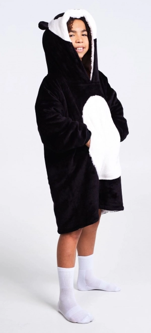 Nagy, kapucnis állatmintás pulóver, amely meleg, puha és pelyhes takaróként is szolgál, bármilyen alkalommal felmelegít, és játékos, tetszetős dizájnjával örömet szerez a gyerekeknek. A pulóver belseje meleg, pelyhes sherpa polárból készült, a külső oldala pedig szuperpuha, selymes anyagból, amelyet a legpuhább takarókhoz használnak. A sorozat minden darabja nagy elülső zsebbel rendelkezik, amelyben remekül felmelegednek a fázós kezek. Minden gyermek biztosan kényelmesen érzi magát benne, akár otthon a kanapén tévézés vagy pihenés közben, akár játék közben, mivel nem korlátozza a mozgásban. Nagyon praktikus sátorozásnál vagy más szabadtéri tevékenységeknél is, illetve hűvösebb időben a kertben való kinti üldögéléshez. Ez a pulóver és takaró egyben szép és praktikus ajándék. A Cozy Noxxiez kínálatában sok esetben ugyanezzel a dizájnnal megtalálható a meleg plüss 3 az 1-ben párna, az óriás meleg mamusz, illetve a kapucnis, állatos és tappancsos zsebbel ellátott meleg takaró, így a teljes melegítő szettet tökéletesen összehangolhatja.