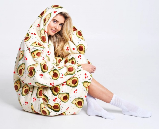 Élvezd a maximális kényelmet a Cozy Noxxiez Avokádó pulóvertakaróval – egy pulóver és takaró egyben. Belsejét meleg sherpa polár, külsejét pedig szuper puha flanel alkotja. A tágas kapucni és a nagy elülső zseb a kezedet és a fejedet is melegen tartja. Ideális kanapéhoz, PC-zéshez, olvasáshoz és kültérre hűvösebb időben.