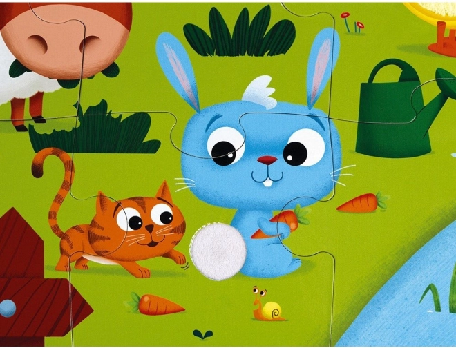 Gyerekeknek szánt JANOD puzzle farmállatok motívummal. Néhány kirakódarab speciális felületkezelést kapott – olyan textúrát, amely a valódi állatok jellegzetességeit idézi. A puzzle fejleszti a gyerekek logikus gondolkodását, figyelmét és memóriáját. A kirakó segítségével megtanulják felismerni a színeket, formákat és tárgyakat, fejlődik a kéz finommotorikája, valamint megtanulják érzékelni a részek és az egész közötti kapcsolatot. A puzzle speciális elemeinek köszönhetően a gyerekek tapintás útján ismerik meg a különböző felületeket. A kész puzzle mérete kb. 65 × 50 cm