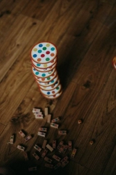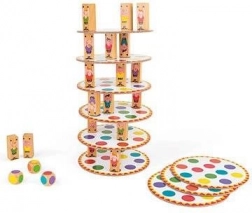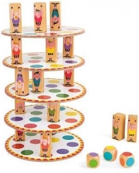 Kinek dől le először a toronya? Szórakoztató társasjáték gyerekeknek a készségek fejlesztésére. Dobj a kockákkal, és helyezd el stratégikusan az akrobatáidat, hogy a lehető legmagasabb tornyot építsd. Az első, akinek ledől a tornya, veszít! A játék fejleszti: - kézügyesség és motorika - stratégiai gondolkodás - koncentráció A játék tartalma: 20 karton alaplap (10,5 x 10,5 cm), 57 fa zseton és 3 dobókocka. 5 éves kortól ajánlott.