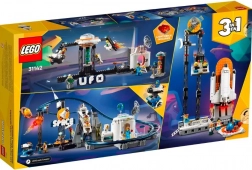 • 3 építési élmény 1 készletben – A LEGO® Creator 3 az 1-ben (31142) Űrvasút készlet 3 különböző modellel nyújt szórakoztató űrbéli játékot, amelyeket a gyerekek megépíthetnek és átépíthetnek • 3 különféle attrakció – Az űrrajongók 3 vidámparki látványosságot építhetnek: Űrvasút, szabadesés-torony és körhinta • Szupergyors intergalaktikus kaland – A hullámvasút pályája rengeteg kanyarral teli, amelyen 3 kocsi száguld, bolygókkal, hullócsillagokkal és meteoritokkal körülvéve • Akciós szabadesés és pörgés – A szabadesés-torony felvonója egészen a csúcsig emelkedik, majd szabadon zuhan, a körhintán pedig mini űrrakéta és űrrepülőgép forog gyorsan • 5 minifigura – A készletben található egy űrhajós, egy apuka és két gyerek, egy tudós és egy mini űrhajós. A figurák ruhái cserélhetők, így a gyerekek mókás új kombinációkat alkothatnak • Tartalmas modell – Ez a 874 elemből álló játékkészlet szórakoztató építési élményt nyújt a 9 éves vagy idősebb LEGO® rajongóknak, és remek karácsonyi vagy születésnapi ajándék a tudomány és technológia kedvelőinek • Kiállítható modell – Az Űrvasút több mint 27 cm magas, 27 cm széles és 55 cm mély, így a gyerekek kiállíthatják a szobájukban • Interaktív digitális építés – A LEGO® Builder alkalmazás lehetővé teszi a kis építőknek, hogy okostelefonon vagy tableten nagyítsák, forgassák és megjelenítsék a modell digitális változatát • Prémium minőség – A LEGO® kockákat több mint hat évtizede úgy gyártjuk, hogy mindig biztonságosan illeszkedjenek egymáshoz • Biztonsági garancia – A LEGO® készletek megfelelnek a szigorú globális biztonsági szabványoknak