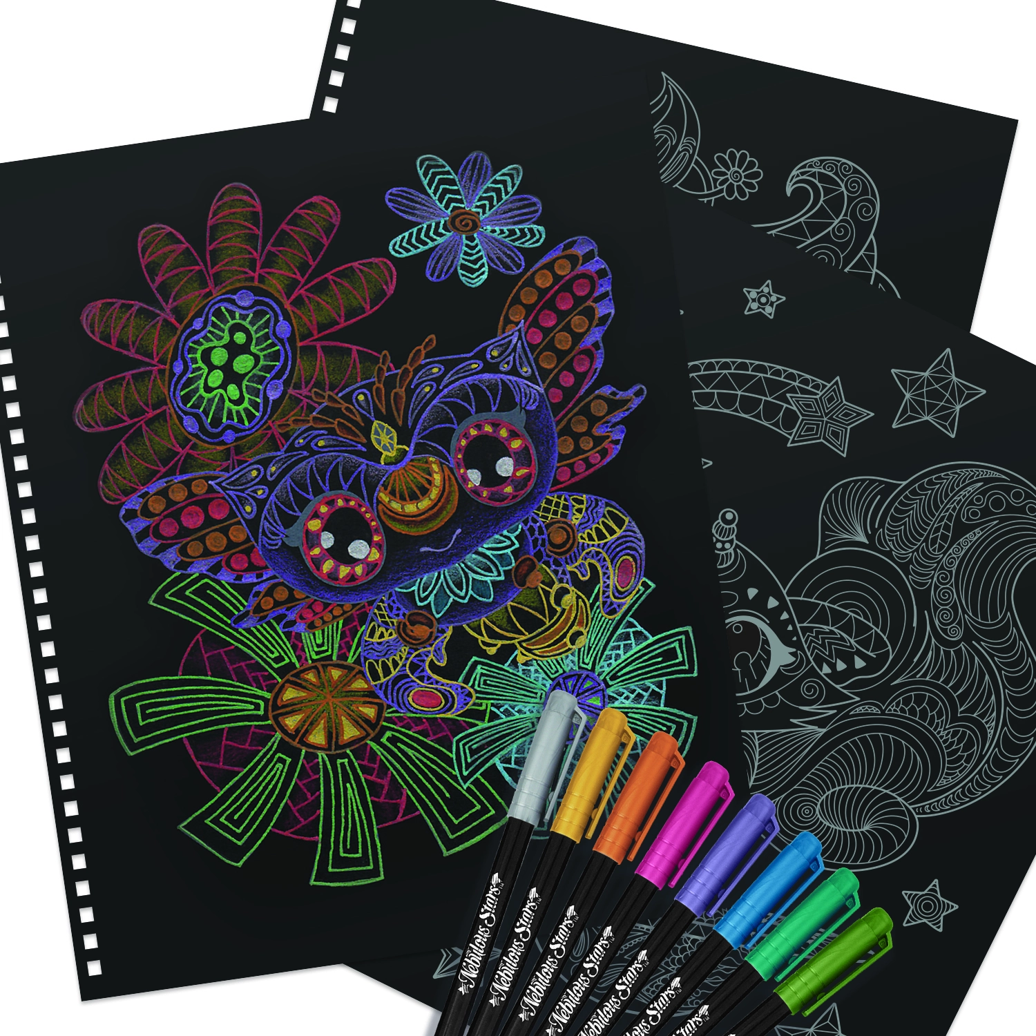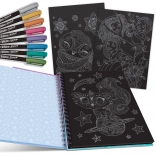 A fekete lapok részletgazdag körvonalaival – állatokkal és fantáziadíszítéssel – megkönnyítik a színezést skiccelés nélkül. Ideális a gyors kezdéshez és a kikapcsolódáshoz.