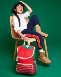 Ez a gyerek hátizsák a bájos epres dizájnt átgondolt, mindennapi funkcionalitással ötvözi. A széles nyílás megkönnyíti a pakolást és a holmik kivételét, míg az átlátszó elülső cipzáras zseb segít gyorsan megtalálni az apróságokat. A rugalmas, hálós kulacszseb gondoskodik róla, hogy az ital mindig kéznél legyen.