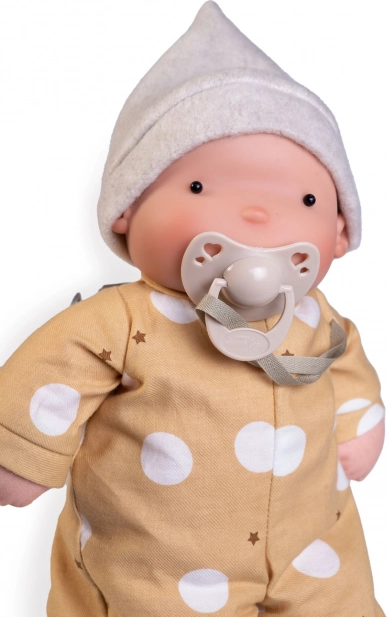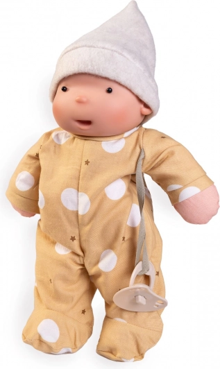 Ez a kézzel készített ARIEL baba gyengéd ölelgetésre és az első szerepjátékokra született. Organikus anyagokat és minőségi kidolgozást ötvöz: test és végtagok organikus pamutból, fej 100% szilikonból, töltet puha, újrahasznosított palackokból származó PET szálból. A mágneses cuminak köszönhetően élethűen néz ki és hat, miközben biztonságos csecsemők és totyogók számára.