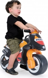 Könnyű és stabil futóbicikli versenymotor stílusban, hivatalos REPSOL licenccel, amely 18 hónapos kortól örömet szerez a kis motorosoknak. A széles kerekek a jobb stabilitásért, az ergonomikus ülés és a forgatható első kerék a könnyű irányításhoz kényelmes és biztonságos vezetést biztosít otthon és kint egyaránt. A tartós IML matricák és az ellenálló felépítés hosszú élettartamot garantálnak, a praktikus hordozófogantyú megkönnyíti a kezelést.