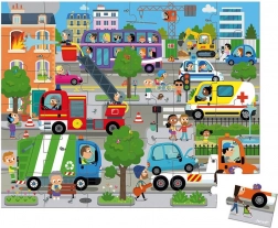 JANOD puzzle nyüzsgő város képpel. A puzzle egyedi és praktikus bőröndben van csomagolva, amely otthonra és utazáshoz is alkalmas. A csomag része egy poszter formájú mintakép is. Összeállított puzzle mérete kb. 50 × 40 cm