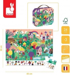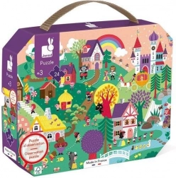Megfigyelő puzzle bőröndben Mesék a Janod-tól szórakozást és tanulást hoz a 3 éves kortól gyermekek számára. Kirakhatják a varázslatos képet tele mesefigurákkal, mint például a Tégla házikó, Szépség és a Szörnyeteg, Piroska vagy a Három kismalac. Minden képen elrejtett elemeket találni, amelyek révén a gyerekek fejleszthetik megfigyelőképességüket.