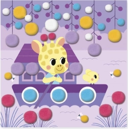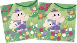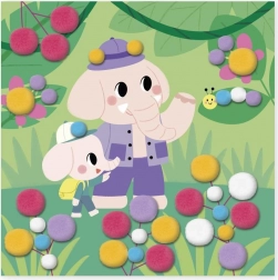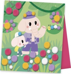 A JANOD My Arts & Crafts: Bambulky készlet tökéletes bevezető a kreatív világba a kisgyermekek számára. Négy képet kínál, amelyeket a gyerekek 150 pompommal díszíthetnek két méretben és öt különböző színben. Mindehhez négy képállvány is tartozik, melyek könnyen elkészíthetők a doboz segítségével.