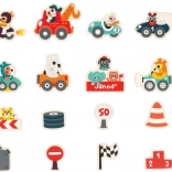 Ez a színes készlet különféle járműtípusokat tartalmaz, beleértve az autókat, motorokat és egy nélkülözhetetlen vontatót. Minden mágnes gondosan készült és díszített, hogy ösztönözze a gyermeki képzeletet és számos játéklehetőséget kínáljon. Adjon hozzá állatos versenyzőket, akik készen állnak a versenyzésre, és önöknek a tökéletes eszközük van a közös szórakozáshoz.