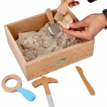 Ez a kreatív készlet ideális a kis kalandoroknak, akik imádják az ásatásokat, a dinoszauruszokat és a homokban való játékot. A gyerekek kereshetik és azonosíthatják a leleteket, saját régészeti expedíciókat alkothatnak, miközben fejlődik a finommotorikájuk és a fantáziájuk. A kinetikus homok többször használható, nem ragad a kézhez, és könnyen takarítható.