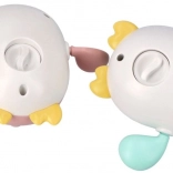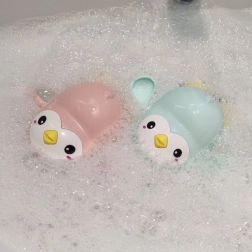 A bájos, pasztellszínű pingvinek ideálisak a mindennapi fürdéshez. Az egyszerű, mechanikus felhúzásnak köszönhetően elemek nélkül is biztonságosan úsznak, és játékra, valamint a finommotorika fejlesztésére ösztönzik a gyerekeket. A sima formák és a kellemes színek garantálják, hogy a kicsik azonnal megszeretik.