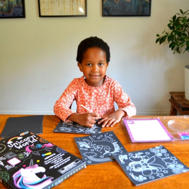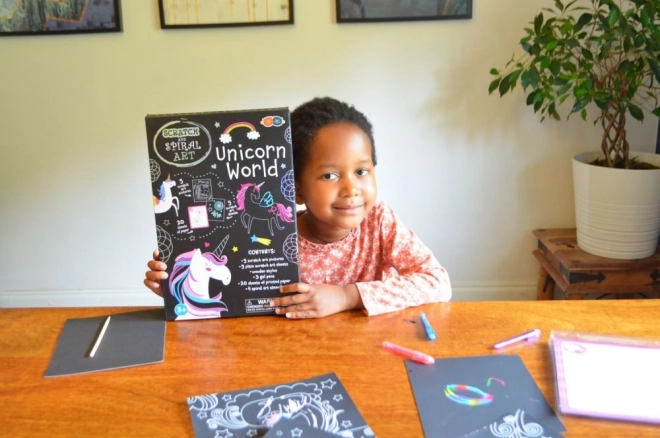 Ez a szórakoztató, unikornisos témájú kreatív készlet órákon át tartó alkotást kínál a kis művészeknek. A gyerekek fa stylus segítségével felfedhetik a színes rétegeket a kapargatós kártyákon, és saját, ragyogó motívumokat hozhatnak létre, vagy kipróbálhatják a spirálrajzot, és színes részletekkel díszíthetik a képeket.