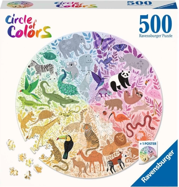RAVENSBURGER Kör alakú puzzle Színes kör: Állatok 500 darab