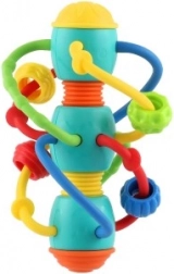 A spirál formájú csörgő és rágóka úgy lett tervezve, hogy segítse a gyermekeket a fogzásban, és fejlessze motoros képességeiket. A gumis részek puhák és kellemes tapintásúak, ami segíti az íny masszírozását.