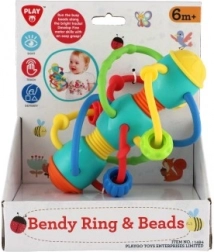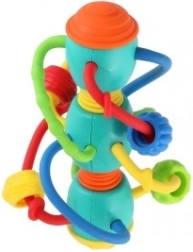 A csörgő különböző színű hurkokat és golyókat tartalmaz, amelyek serkentik a gyermek kíváncsiságát és fejlesztik az érzékszervi érzékelést.